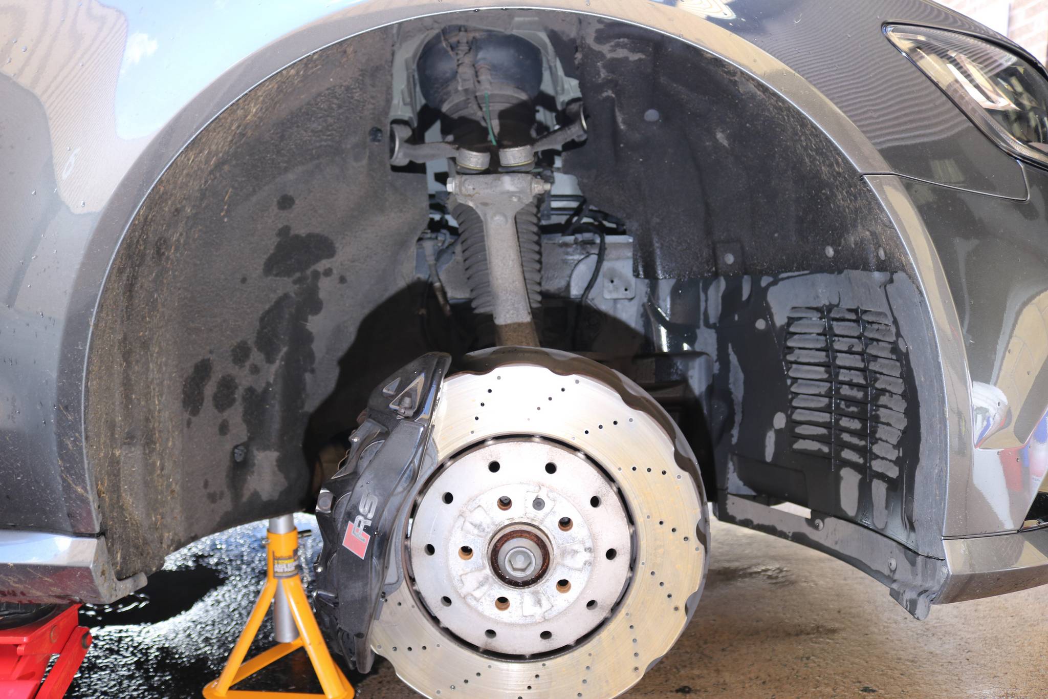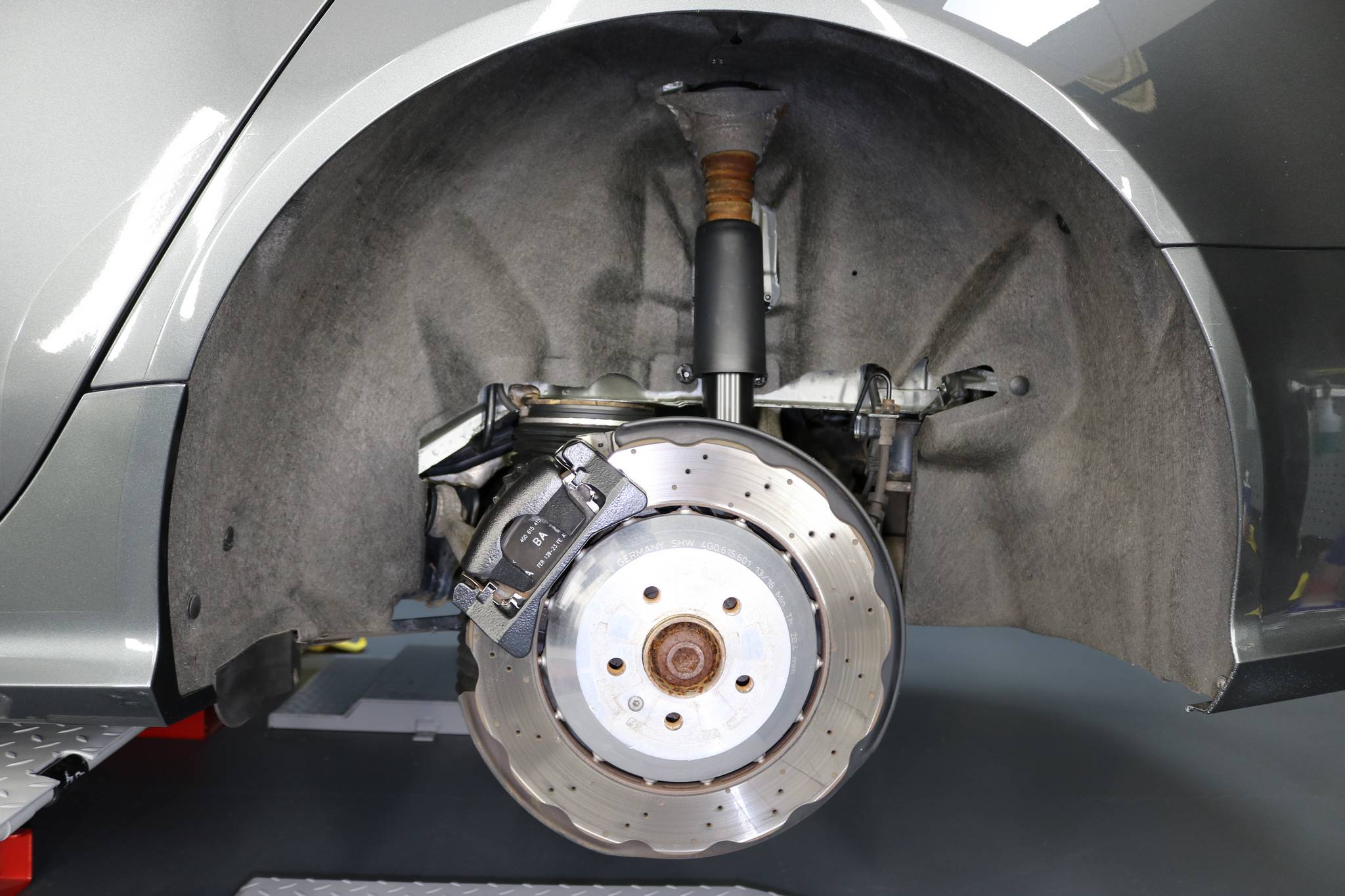 The wheels off package was carried out with arch liners, wheels, brake callipers, exhaust tips and suspension components decontaminated and cleaned. The wheels and calipers were protected with Krypton 9 ceramic for easy long term maintenance.